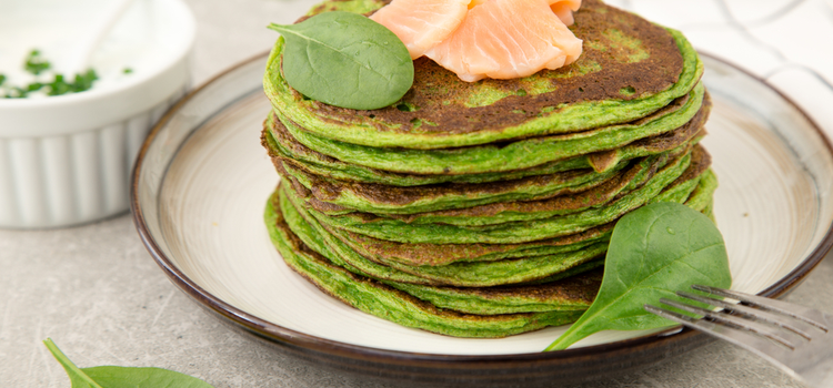 - Tilsett spinat i en blender og bland til en puree. Tilsett mel, bakepulver, egg og melk. Bland til uniform.